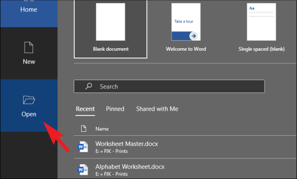 Затем нажмите на плитку «Открыть» на левой боковой панели окна, чтобы продолжить.
