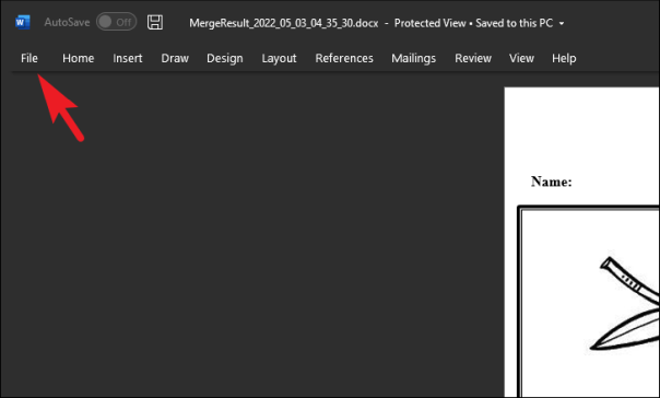 Когда файл открыт, щелкните вкладку «Файл» на панели инструментов, расположенной в правом верхнем углу экрана, чтобы продолжить.