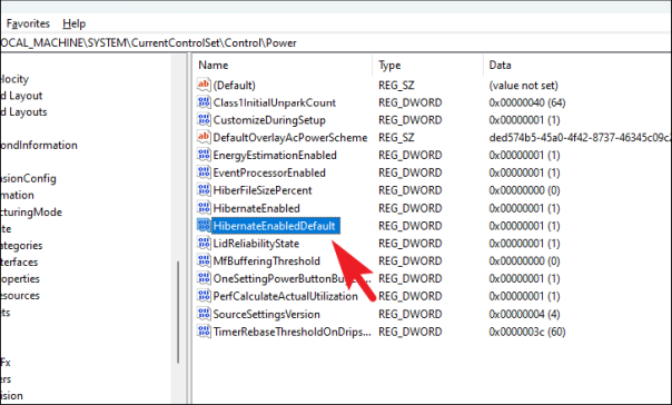 После этого в правой части окна найдите и дважды щелкните файл DWORD «HibernateEnabledDefault». Это откроет отдельное окно на вашем экране.