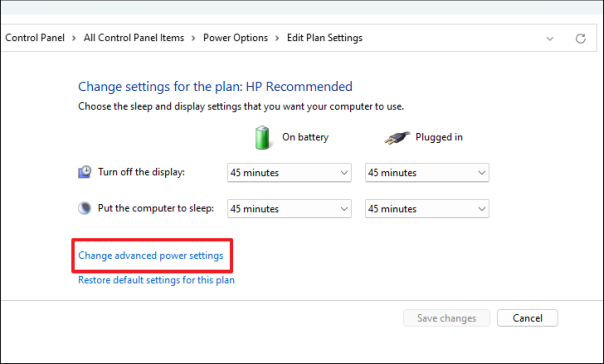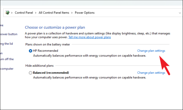 Затем на следующем экране найдите и нажмите «Изменить дополнительные параметры питания», чтобы продолжить. Это откроет отдельное окно на вашем экране.