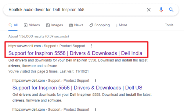 Затем в результатах поиска вы сможете получить прямую ссылку для аудиодрайвера, ведущую на ваш конкретный веб-сайт поддержки производителя.