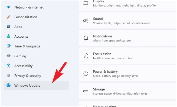 Затем щелкните вкладку «Центр обновления Windows» на левой боковой панели окна «Настройки».