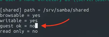 – Отключить гостевой доступ, установив guest ok = no в конфигурации Samba