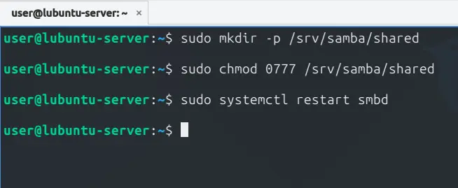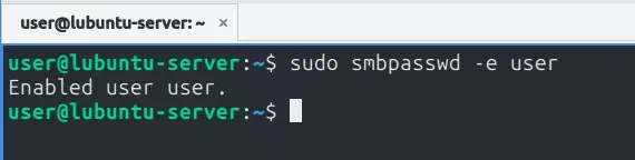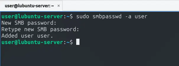 Для доступа к общей папке через Samba необходимо создать пользователя Samba: