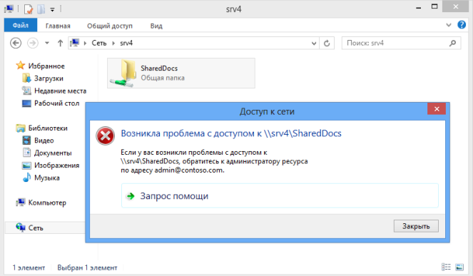 Помощь при отказе в доступе работает только в том случае, если в качестве клиентской ОС используется Windows 8. Пользователи Windows 7 или XP увидят стандартное сообщение об ошибке, независимо от настроек на сервере.