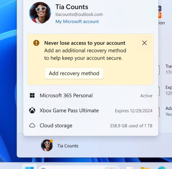 Задачей нового менеджера, как и прежде, является переключение с одной учетной записи пользователя в другую. Кроме того, в диалоговом окне переключения станут также отображаться сведения о подписке Microsoft 365, срок действия подписки Xbox Game Pass и объем свободного пространства в облачном хранилище OneDrive.