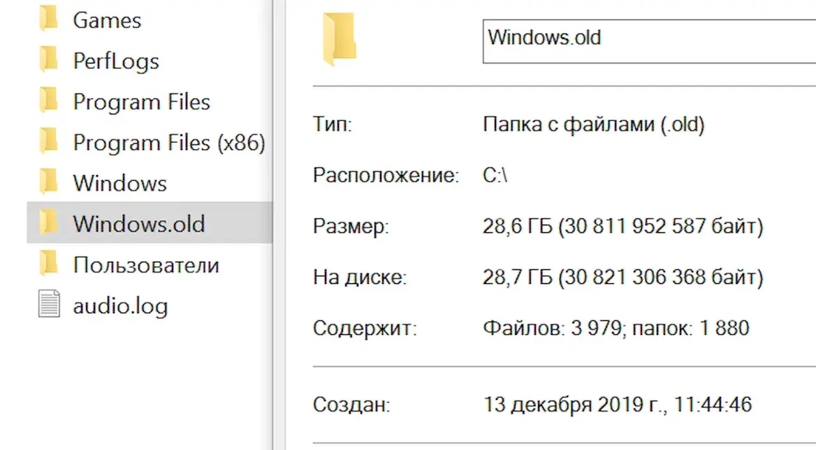 – Папка Windows.old может занимать от 10 до 30 ГБ в зависимости от того, сколько программ и файлов было установлено.