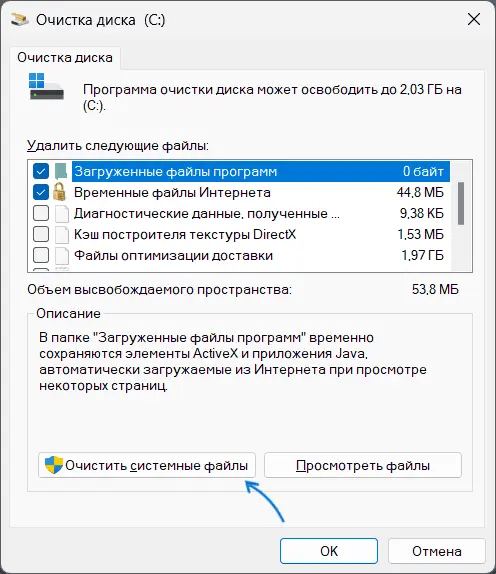 3. В окне очистки нажмите Очистить системные файлы.