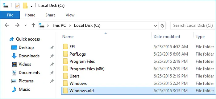 2. Найдите папку Windows.old.