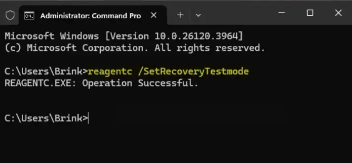 reagentc.exe /SetRecoveryTestmode
