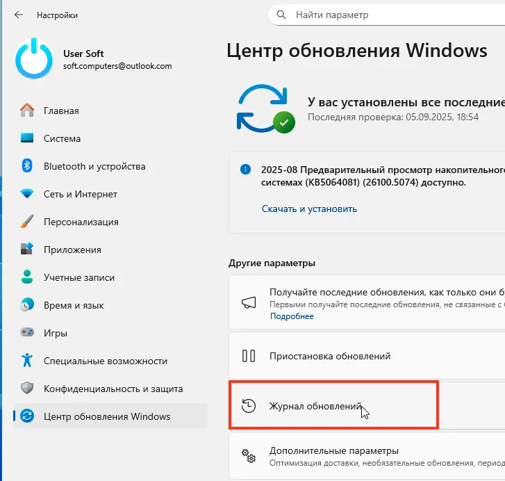 – «Параметры» → «Обновление и безопасность» → «Журнал обновлений» → «Удалить обновления».