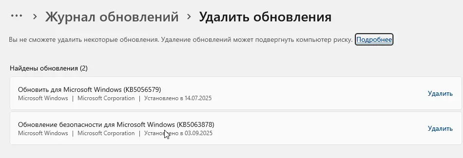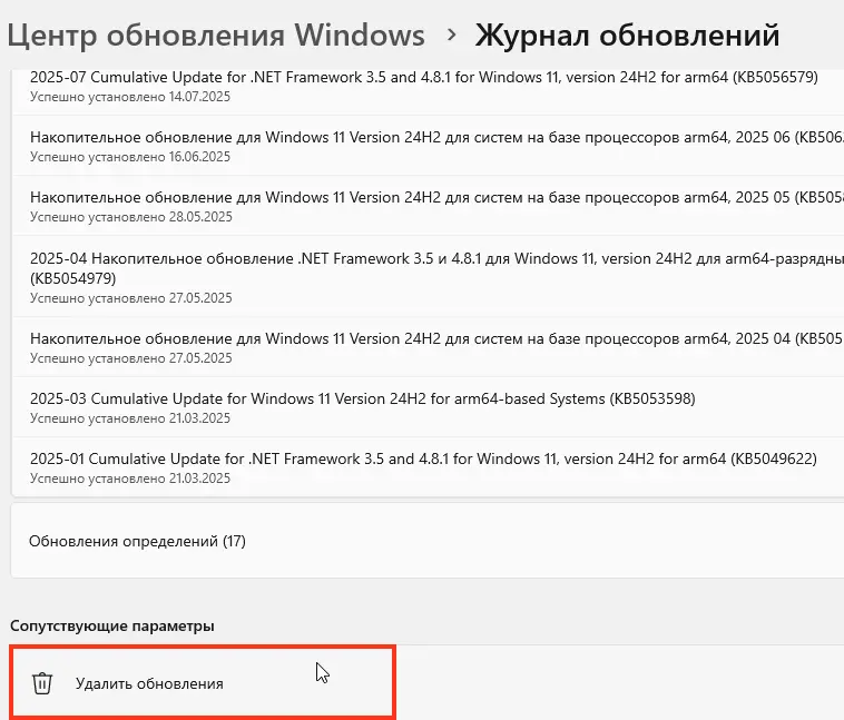 Шаг 6. Удаление проблемных обновлений