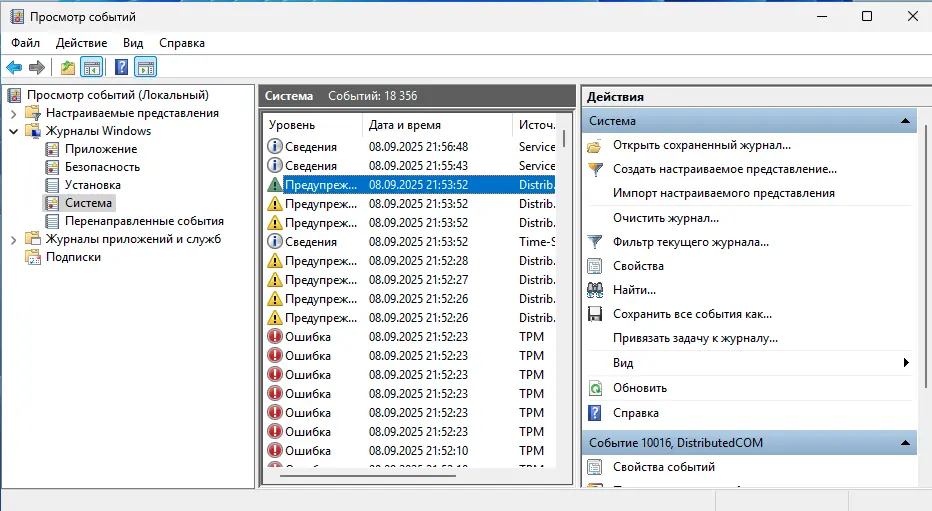 – Откройте «Просмотр событий» (Win + X → «Просмотр событий» → Журналы Windows → Система).