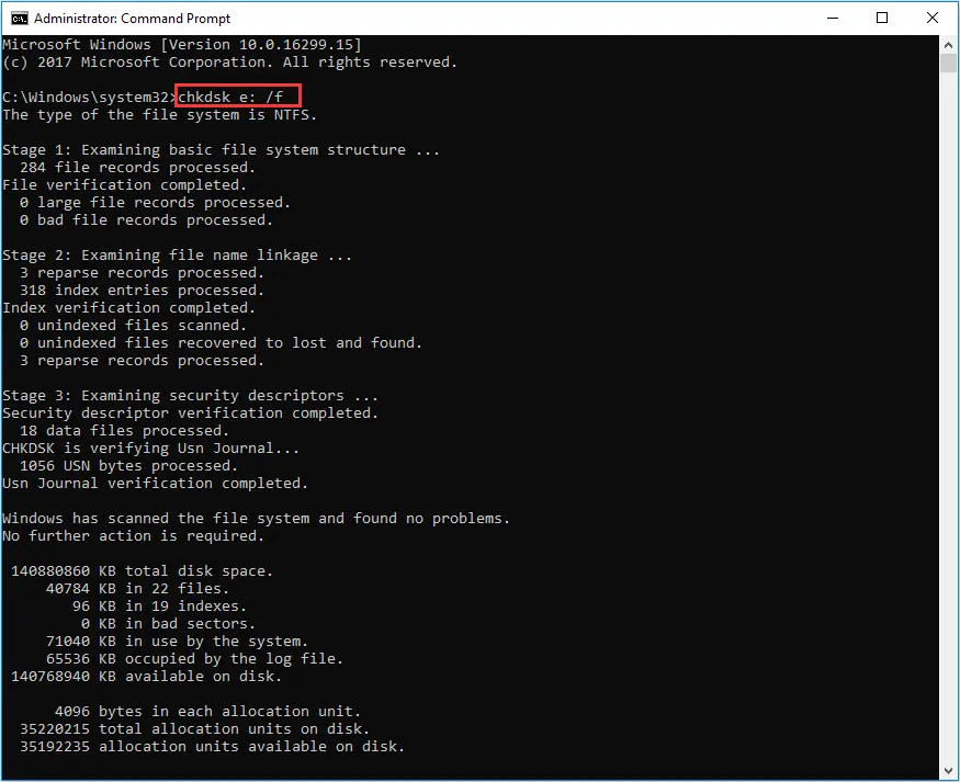 chkdsk C: /f /r
