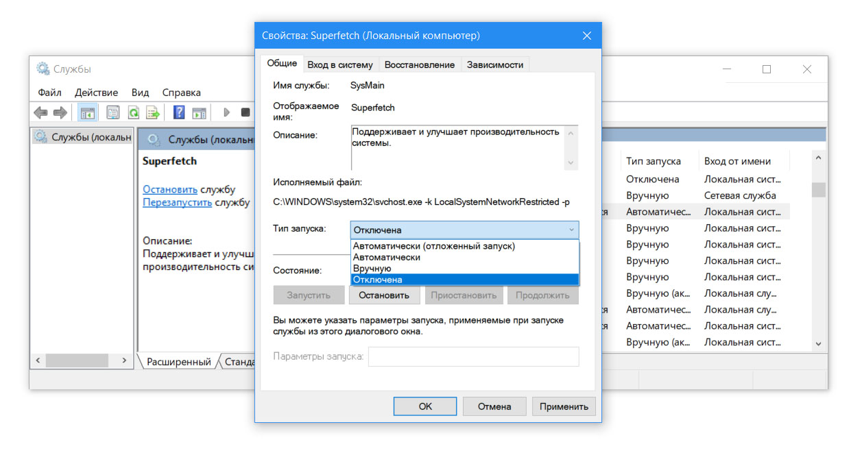 Естественно возникает вопрос, можно ли отключать службу Superfetch в Windows 10?