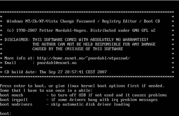 Способ, который я хочу предложить пользуется функционалом программы ntpasswd. Функционал хоть и не широк, но очень востребован.
