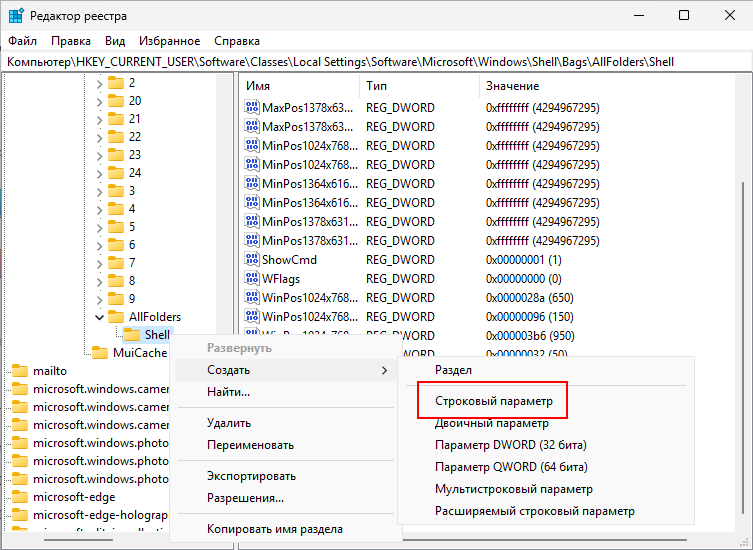 HKCUSoftwareClassesLocal SettingsSoftwareMicrosoftWindowsShellBagsAllFoldersShell