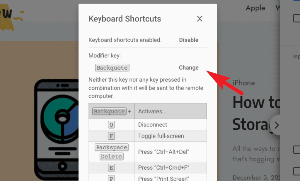На панели наложения в разделе «Клавиша-модификатор:» будет отображаться текущая установленная клавиша-модификатор; вам нужно будет нажать эту клавишу, прежде чем вы сможете использовать любой из отображаемых на экране ярлыков. Чтобы изменить ключ, нажмите кнопку «Изменить», а затем нажмите клавишу-модификатор по вашему выбору на клавиатуре, чтобы подтвердить и установить ключ.