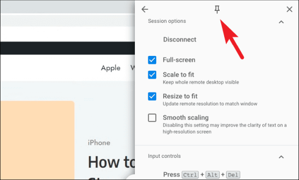 Более того, если вы хотите изменить размер удаленного разрешения до текущего разрешения экрана просмотра или отключить плавное масштабирование для улучшения разрешения (оно включено по умолчанию), щелкните их отдельные флажки перед опцией, чтобы включить или выключить их.