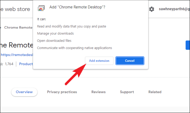 Затем в приглашении нажмите кнопку «Добавить расширение», чтобы загрузить и установить расширение. После установки вы получите уведомление об этом в правом верхнем углу экрана.
