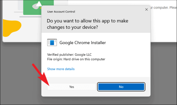 Затем на вашем экране появится экран UAC (Контроль учетных записей пользователей). Если вы не вошли в систему с учетной записью администратора, введите учетные данные для нее. В противном случае нажмите кнопку «Да», чтобы продолжить.