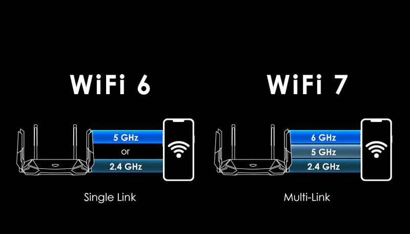– Wi-Fi 7 — следующий шаг после Wi-Fi 6/6E: предлагает более широкие каналы (до 320 МГц), улучшенную модуляцию (включая 4096-QAM), более эффективное распределение по диапазонам частот и низкую задержку.