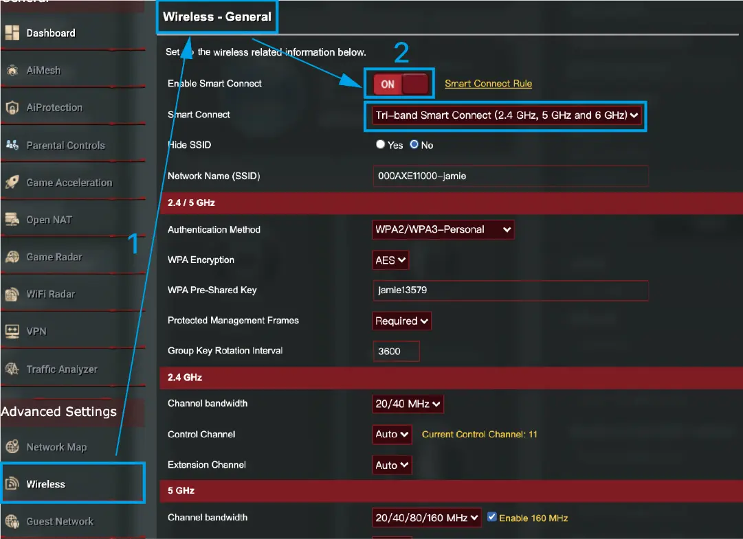 – Отключите Smart Connect (или похожие функции) на роутере, которые автоматически перебрасывают устройства между 2.4 GHz / 5 GHz / 6 GHz, чтобы удостовериться, что устройство действительно использует нужный диапазон / канал.