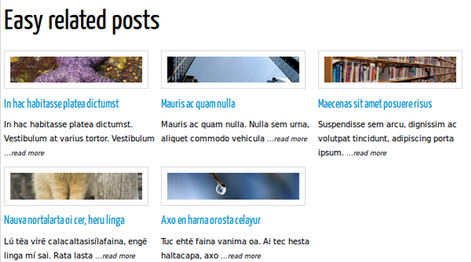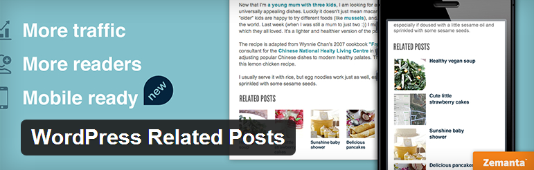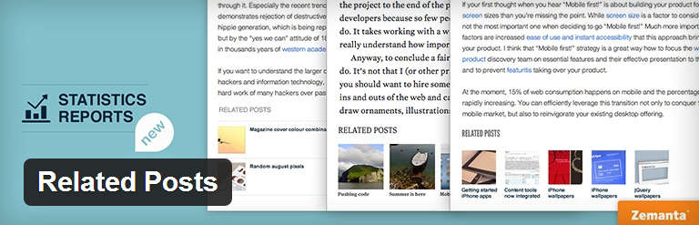WordPress Related Posts плагин от автора Zemanta. Простой, но очень функциональный плагин для вывода похожих записей с миниатюрами в конце статьи. Адаптирован под мобильные устройства, имеет свою статистику кликов по выводимым записям.