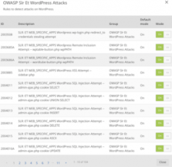 Поддерживает OWASP top 10. Однако, если вам нужно больше этого, вы можете изучить управляемые правила Alert’s Logic для WordPress.