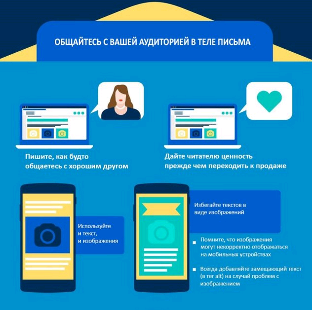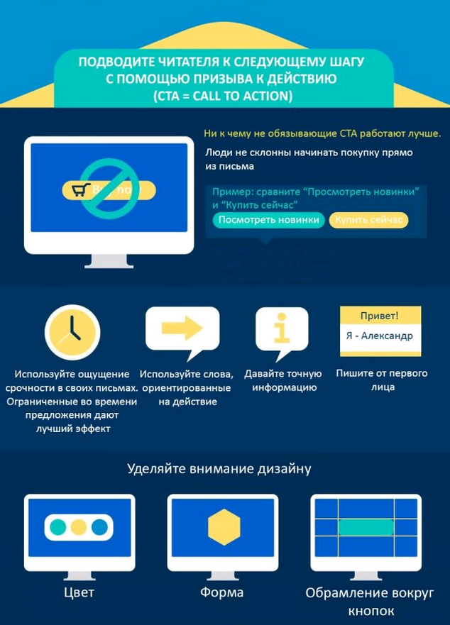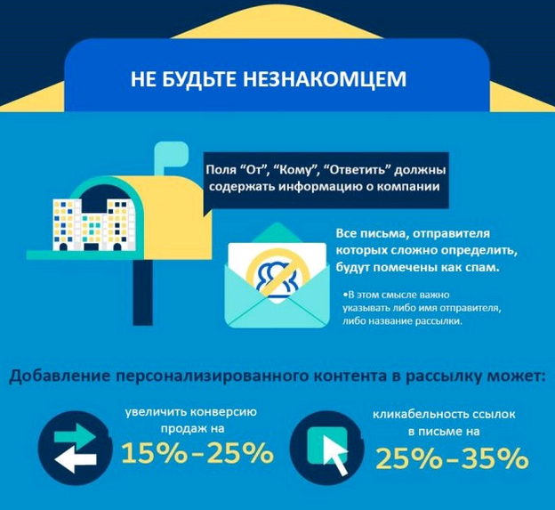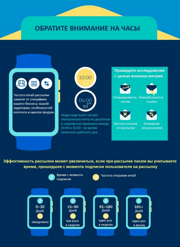 Email-маркетинг используется маркетологами уже не давно для коммуникации с целевой аудиторией и вопрос об эффективности рассылок и поиск способов повысить их результативность остается актуальным. Сегодня мы с вами рассмотрим инфографику, где вы сможете увидеть на что необходимо обратить внимание если вы занимаетесь рассылкой на регулярной основе — от важных параметров в рассылке, до продающих элементов дизайна, от советов, в какое время отправлять рассылку, до рекомендаций, как именно обращаться к подписчику в письме.